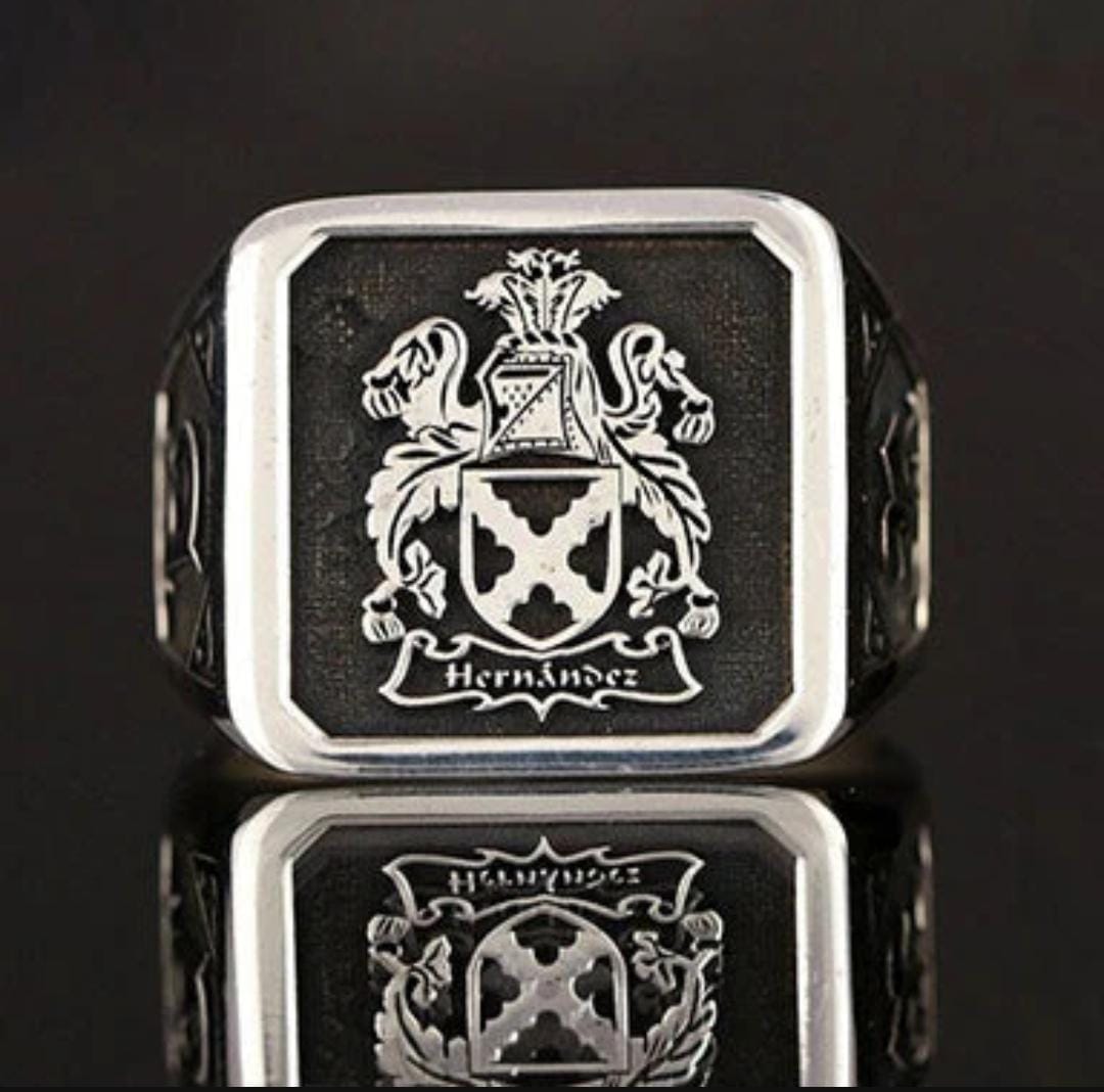 El anillo es inspirado en la forma clásica de un escudo de armas familiar.