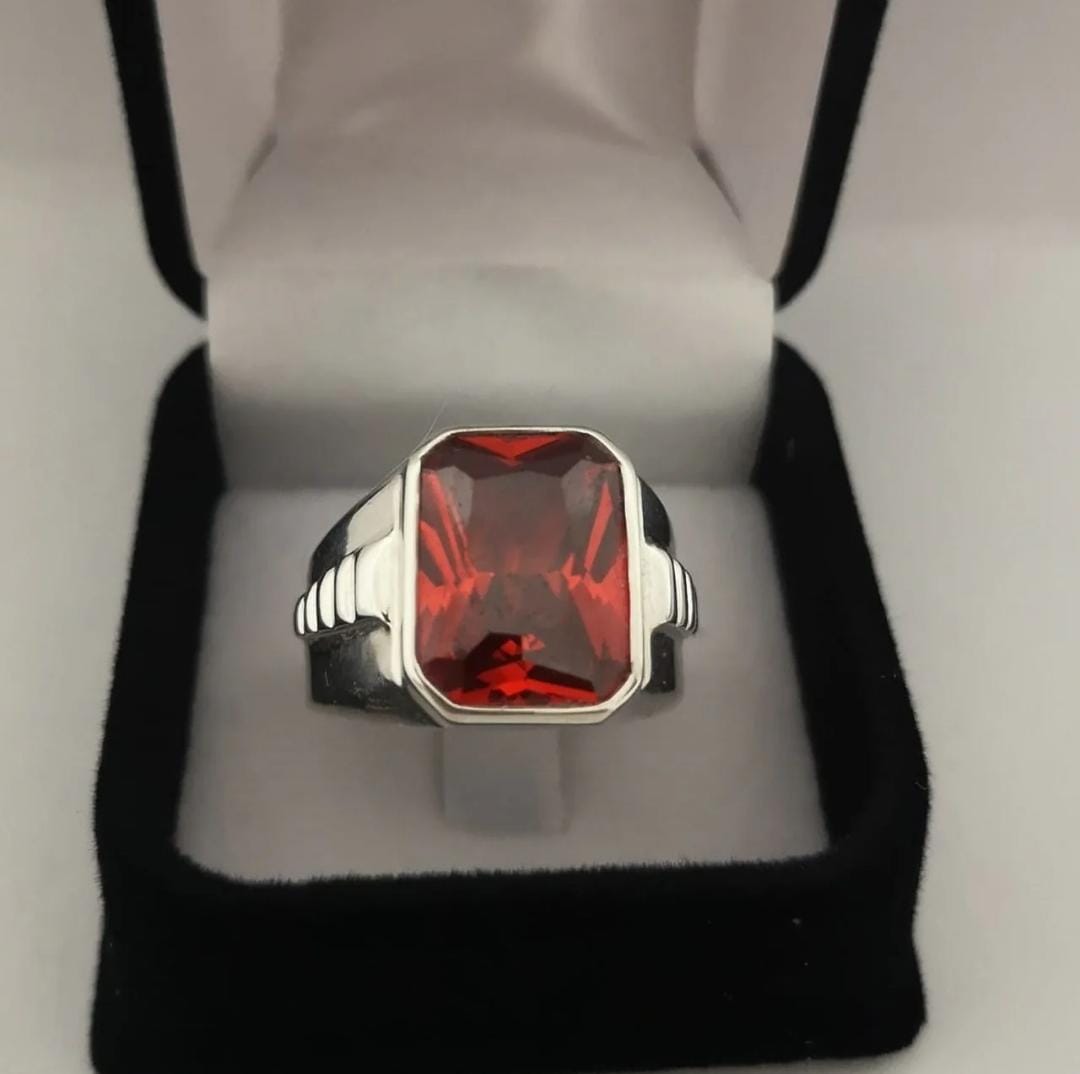 Anillo Imperial de Plata Fina 950 - Circón Rubí