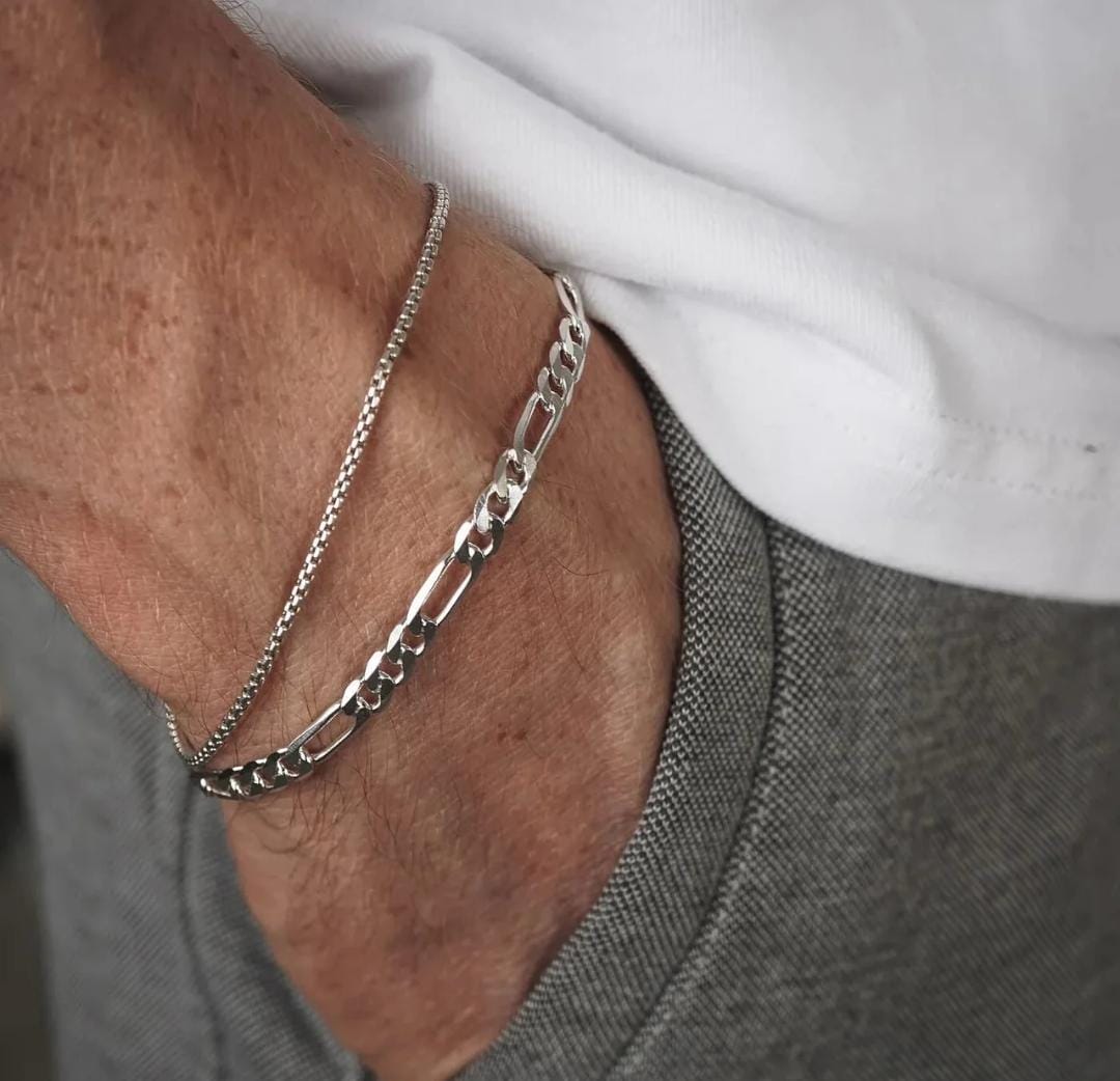 Pulsera modelo Fígaro de Plata Fina Ley 950 de 20 cm de largo y 3 mm de ancho